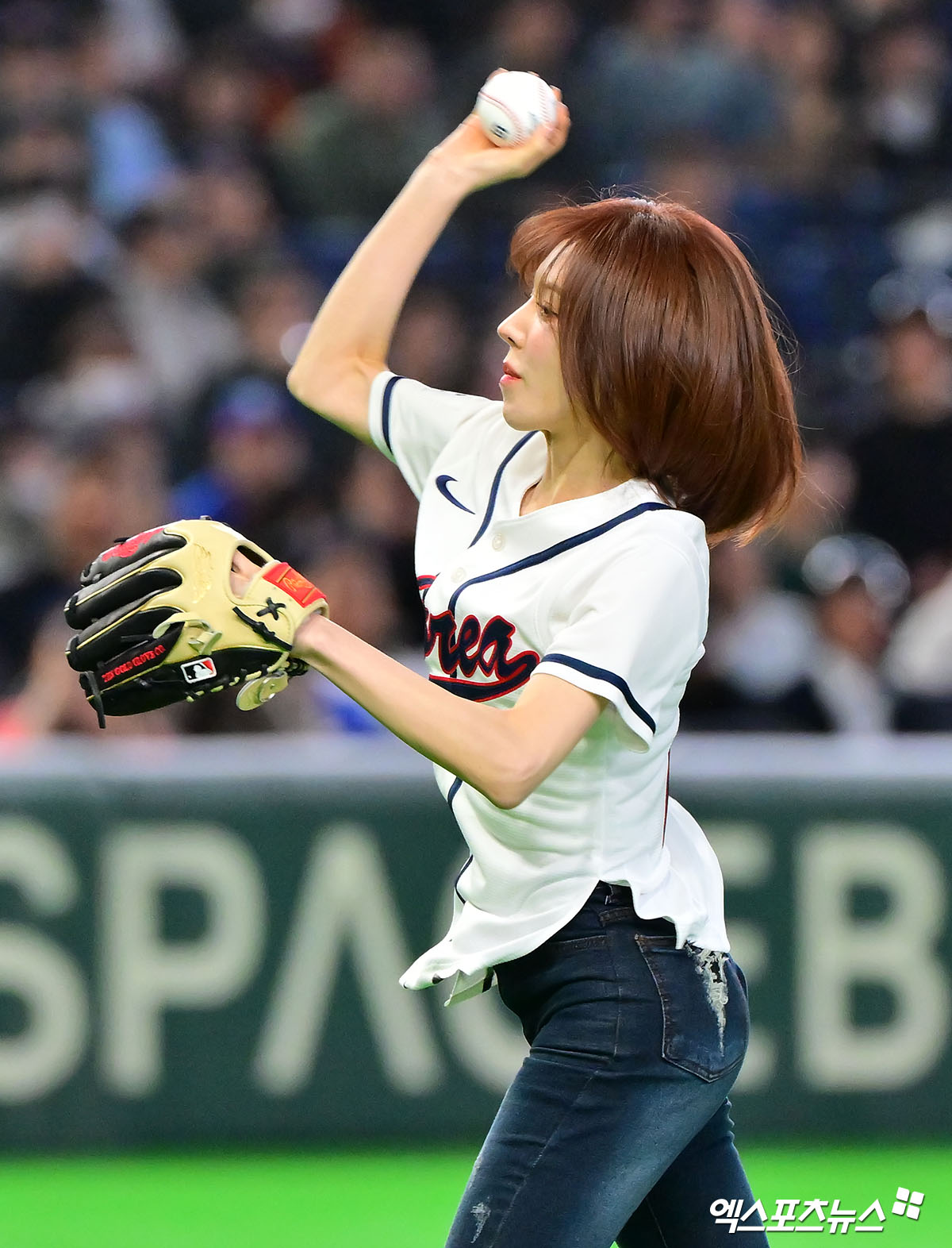 (엑스포츠뉴스 도쿄(일본), 김한준 기자) 5일 오후 일본 도쿄돔에서 열리는 2026 월드베이스볼클래식(WBC) C조 체코와 대한민국의 경기, 경기 전 레드벨벳 웬디가 시구에 임하고 있다.