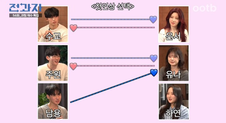 최종 선택에서 수교와 은서는 서로를 택했고, 하연은 수교를 택했다. 남용과 주원은 첫인상과 동일하게 유나를 택했고, 유나는 주원에서 남용으로 최종 선택이 바뀌었다. 전과팅 마지막 화에서 무려 두 커플이 탄생하자 카이와 이창섭, 시청자들은 도파민이 폭발한다는 반응을 보였다.