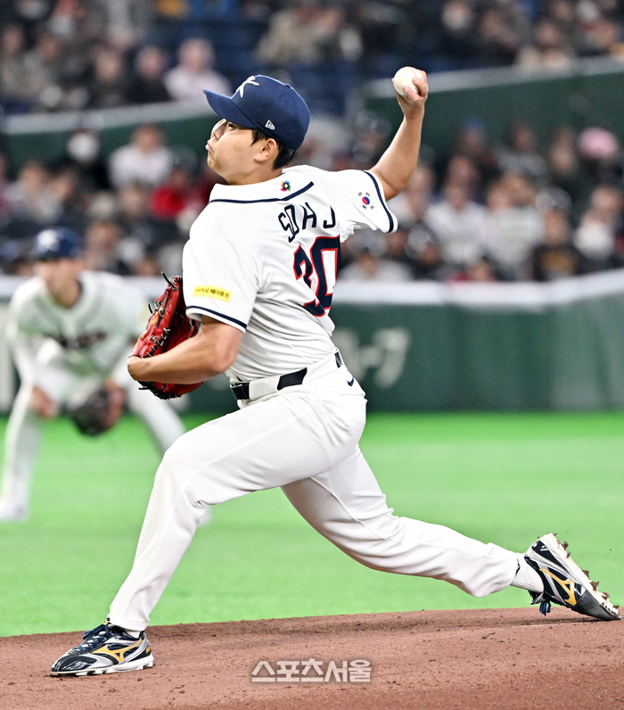 대한민국 야구대표팀의 소형준이 5일 일본 도쿄 도쿄돔에서 열린 2026 월드 베이스볼 클래식(WBC) 조별리그 체코와의 경기에 선발 등판해 힘차게 공을 던지고 있다. 2026. 3. 5.