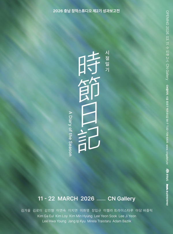 (충남=국제뉴스) 박의규 기자 = 충청남도와 충남문화관광재단이 주최·주관하는 충남창작스튜디오 2기 입주작가 성과보고전 <시절일기時節日記>가 오는 3월 11일(수)부터 22일(일)까지 서울 북촌에 위치한 CN갤러리에서 개최된다.