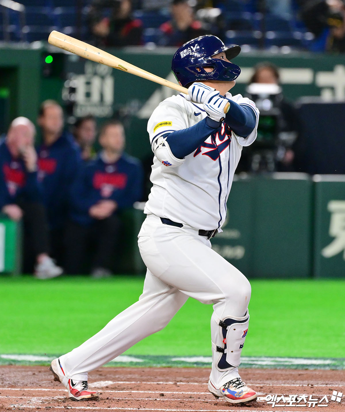 (엑스포츠뉴스 도쿄(일본), 김한준 기자) 5일 오후 일본 도쿄돔에서 열린 2026 월드베이스볼클래식(WBC) C조 체코와 대한민국의 경기, 1회말 1사 만루 한국 문보경이 만루 홈런을 날리고 있다.