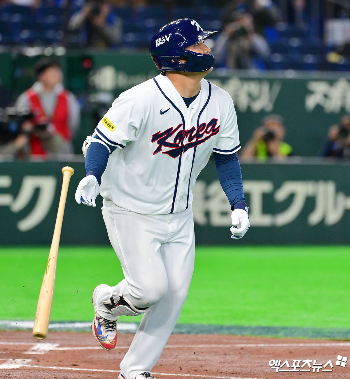 (엑스포츠뉴스 도쿄(일본), 김한준 기자) 5일 오후 일본 도쿄돔에서 열린 2026 월드베이스볼클래식(WBC) C조 체코와 대한민국의 경기, 1회말 1사 만루 한국 문보경이 만루 홈런을 날리고 있다.