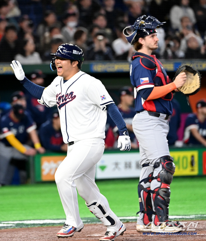 5일 일본 도쿄돔에서 열린 WBC(월드베이스볼클래식) 한국과 체코의 경기. 1회말 1사 만루 문보경이 선제 만루홈런을 치고 기쁨을 나누고 있다. 도쿄(일본)=허상욱 기자wook@sportschosun.com/2026.03.05/