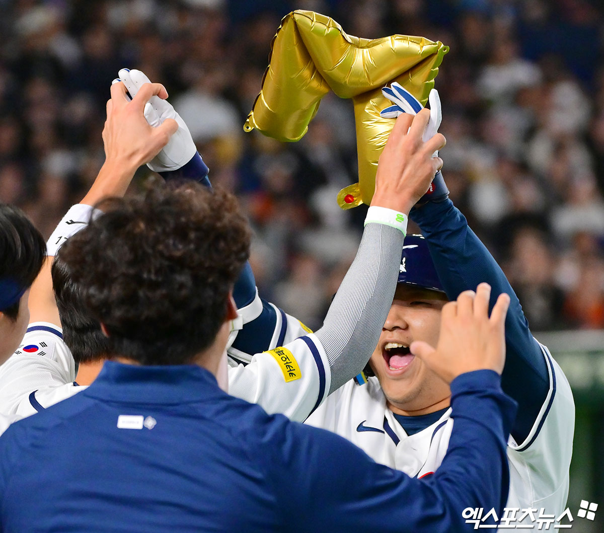 (엑스포츠뉴스 도쿄(일본), 김한준 기자) 5일 오후 일본 도쿄돔에서 열린 2026 월드베이스볼클래식(WBC) C조 체코와 대한민국의 경기, 1회말 1사 만루 한국 문보경이 만루 홈런을 날린 후 기뻐하고 있다.