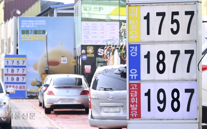 휘발유보다 비싼 경유 - 미국·이스라엘의 이란 공습으로 국제유가가 오르는 가운데 5일 서울의 한 주유소에서 경유 가격이 1877원으로 휘발유 가격(1757원)보다 100원 이상 높게 책정돼 있다. 경유는 화물차·건설기계·선박·산업용 등 수요처가 넓어 가격 급등기에는 일시적으로 휘발유보다 가격이 높아지기도 한다. 도준석 전문기자 |