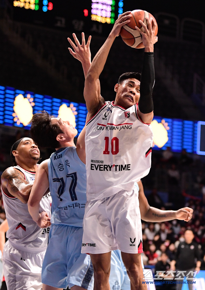5일 고양 소노아레나에서 열린 프로농구 고양 소노와 안양 정관장의 경기. 리바운드를 잡아내고 있는 정관장 아반도. 고양=송정헌 기자songs@sportschosun.com/2026.03.05/ |