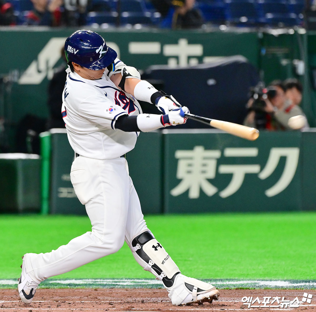 (엑스포츠뉴스 도쿄(일본), 김한준 기자) 5일 오후 일본 도쿄돔에서 열린 2026 월드베이스볼클래식(WBC) C조 체코와 대한민국의 경기, 2회말 한국 박동원이 2루타를 날리고 있다.