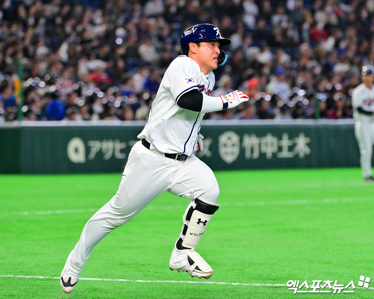 (엑스포츠뉴스 도쿄(일본), 김한준 기자) 5일 오후 일본 도쿄돔에서 열린 2026 월드베이스볼클래식(WBC) C조 체코와 대한민국의 경기, 2회말 한국 박동원이 2루타를 날리고 있다.