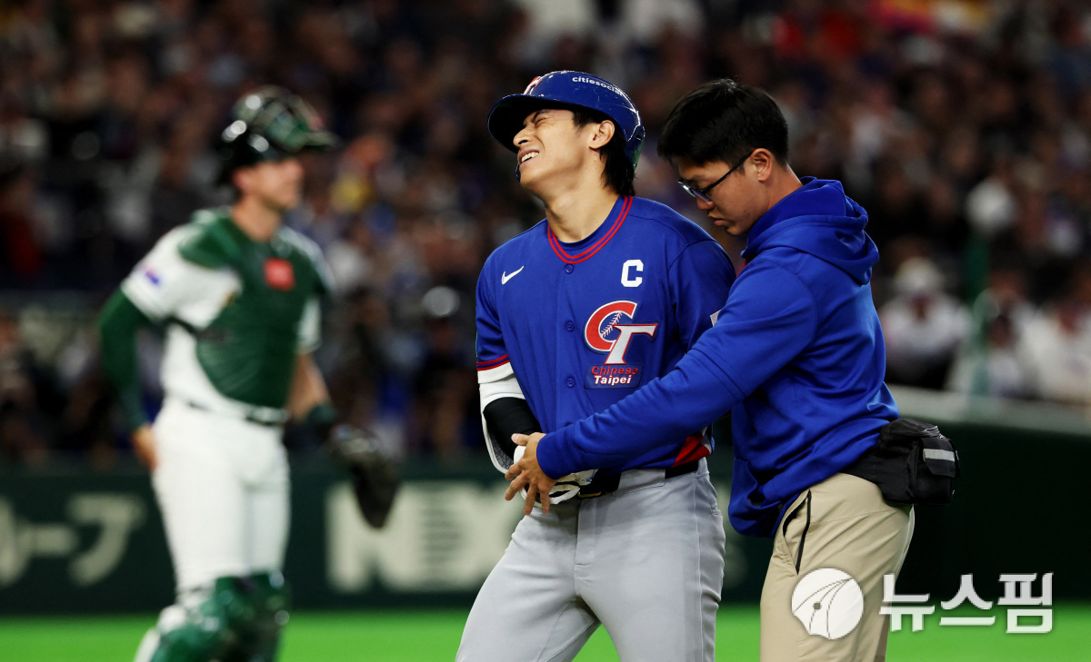 [도쿄 로이터=뉴스핌] 대만의 중심 타자 천제셴이 WBC 호주와의 경기에서 타구에 공을 맞아 부상을 당했다. 2026.03.05 wcn05002@newspim.com |