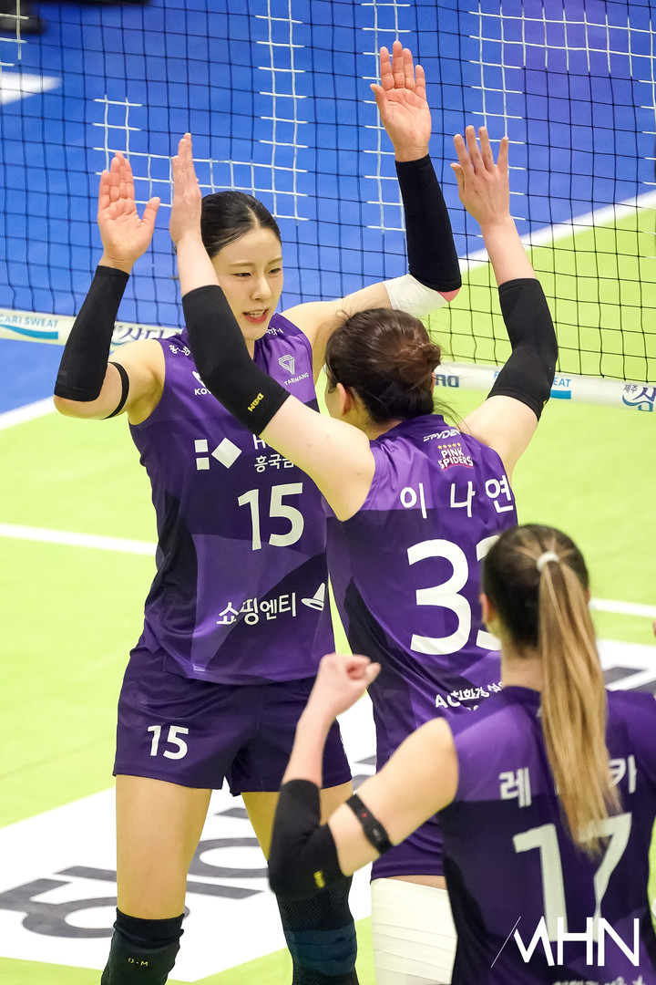 (MHN 수원, 박태성 기자) 5일 수원실내체육관에서 '진에어 2025~2026 V-리그' 여자부 현대건설(2위 61점 32경기 21승 11패)과 흥국생명(3위 53점 33경기 17승 16패) 경기가 열렸다.