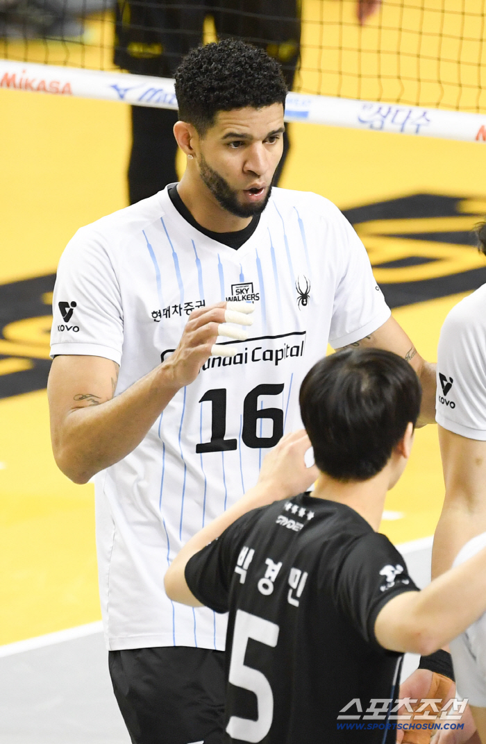 5일 의정부 경민대학교 체육관에서 열린 V리그 남자부 KB손해보험과 현대캐피탈의 경기. 현대캐피탈 레오가 득점 후 환호하고 있다. 의정부=박재만 기자 pjm@sportschosun.com/2026.03.05/
