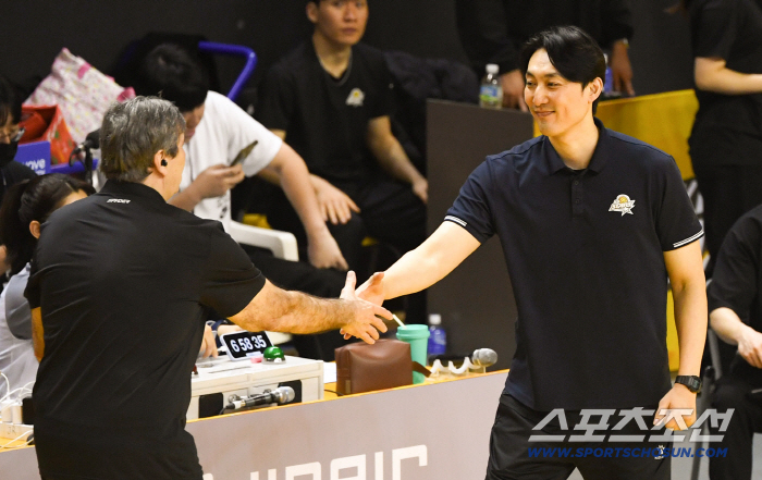 5일 의정부 경민대학교 체육관에서 열린 V리그 남자부 KB손해보험과 현대캐피탈의 경기. 필립 블랑 감독과 하현용 감독대행이 인사를 나누고 있다. 의정부=박재만 기자 pjm@sportschosun.com/2026.03.05/ |