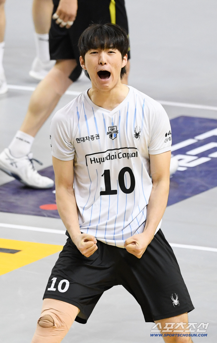5일 의정부 경민대학교 체육관에서 열린 V리그 남자부 KB손해보험과 현대캐피탈의 경기. 현대캐피탈 김진영이 득점 후 환호하고 있다. 의정부=박재만 기자 pjm@sportschosun.com/2026.03.05/ |