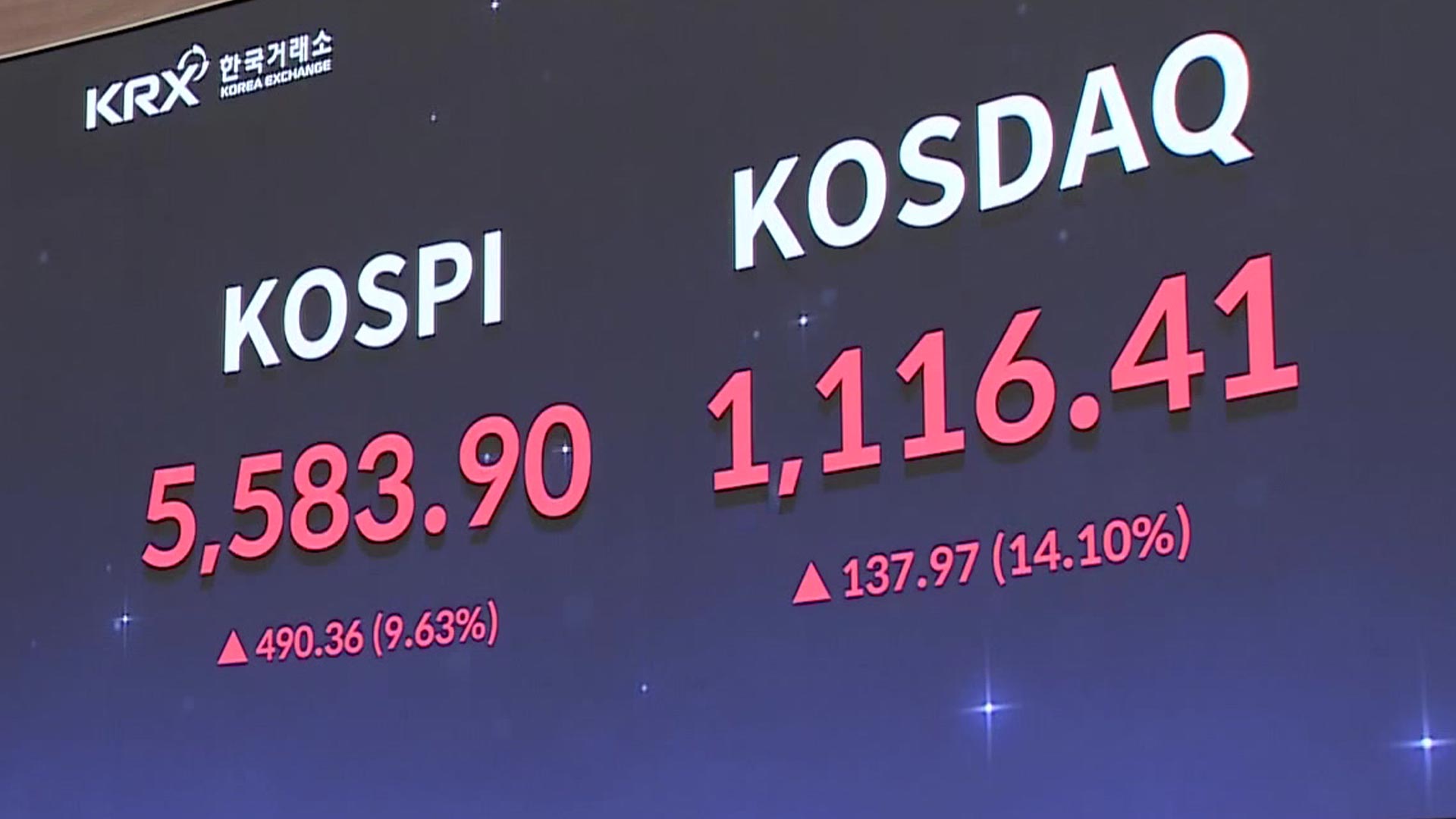 오늘(5일) 코스피는 9% 넘게 올라 금융위기 이후 역대 두 번째 상승률을 보였고 코스닥도 14% 넘게 뛰며 사상 최고 상승률을 기록했습니다.