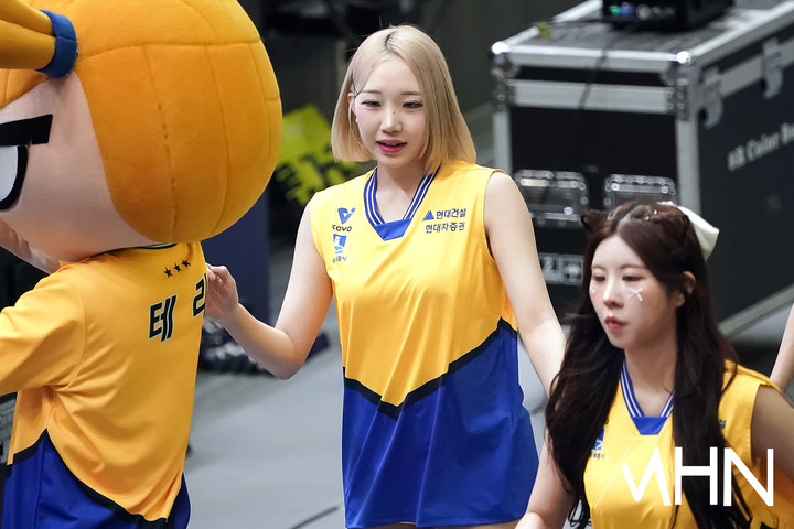 현대건설 치어리더가 공연을 펼치고 있다.