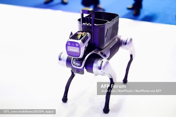 (스페인=국제뉴스) 박준영 기자 - 4일(현지시간) 첨단 소비자용 로봇 강아지인 유니트리 고2 스마트 4족 보행 로봇이 스페인 바르셀로나에서 열린 MWC 2026 중국관에 전시됐다.