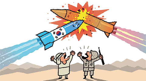 ▶2000년대 북한이 탄도미사일을 급속히 늘렸다. 주한미군은 패트리엇을 쓰는데 한국은 독자 요격 미사일 개발에 나섰다. 패트리엇은 너무 비쌌고 한반도 지형엔 맞지 않을 수도 있었다. 당시 정부는 중·러 등이 ‘미국 미사일 방어 체계에 들어가지 말라’고 압박하는 것도 부담스러웠다. 러시아가 빌린 돈 대신 무기를 주겠다는 제안을 해왔다. 러 기업과 협력해 비행기를 잡는 지대공 미사일 ‘천궁1’을 개발했다. 그 경험을 바탕으로 탄생시킨 것이 미사일 잡는 미사일 ‘천궁2’다.