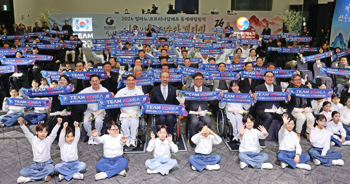 2026 밀라노·코르티나담페초 동계 패럴림픽에 출전하는 대한민국 선수단이 지난 2월2일 서울 올림픽파크텔에서 열린 결단식에서 기념촬영을 하고 있다. 연합뉴스 |