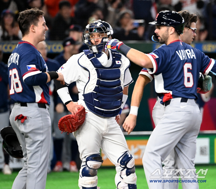 5일 일본 도쿄돔에서 열린 WBC(월드베이스볼클래식) 한국과 체코의 경기. 5회초 1사 1,2루 체코 바브라가 추격의 3점홈런을 날렸다. 포수 박동원이 아쉬워하고 있다. 도쿄(일본)=허상욱 기자wook@sportschosun.com/2026.03.05/