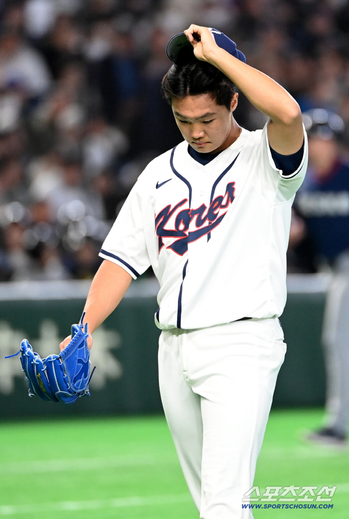 5일 일본 도쿄돔에서 열린 WBC(월드베이스볼클래식) 한국과 체코의 경기. 5회초 1사 1,2루 정우주가 체코 바브라에 추격의 3점홈런을 허용한 뒤 이닝을 마친 후 아쉬워하고 있다. 도쿄(일본)=허상욱 기자wook@sportschosun.com/2026.03.05/ |