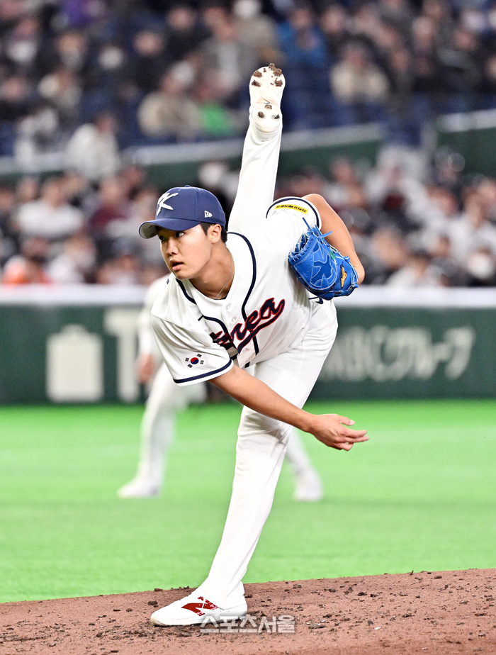 대한민국 야구대표팀의 정우주가 5일 일본 도쿄 도쿄돔에서 열린 2026 월드 베이스볼 클래식(WBC) 조별리그 체코와의 경기 5회초 등판해 힘차게 공을 던지고 있다. 2026. 3. 5.
