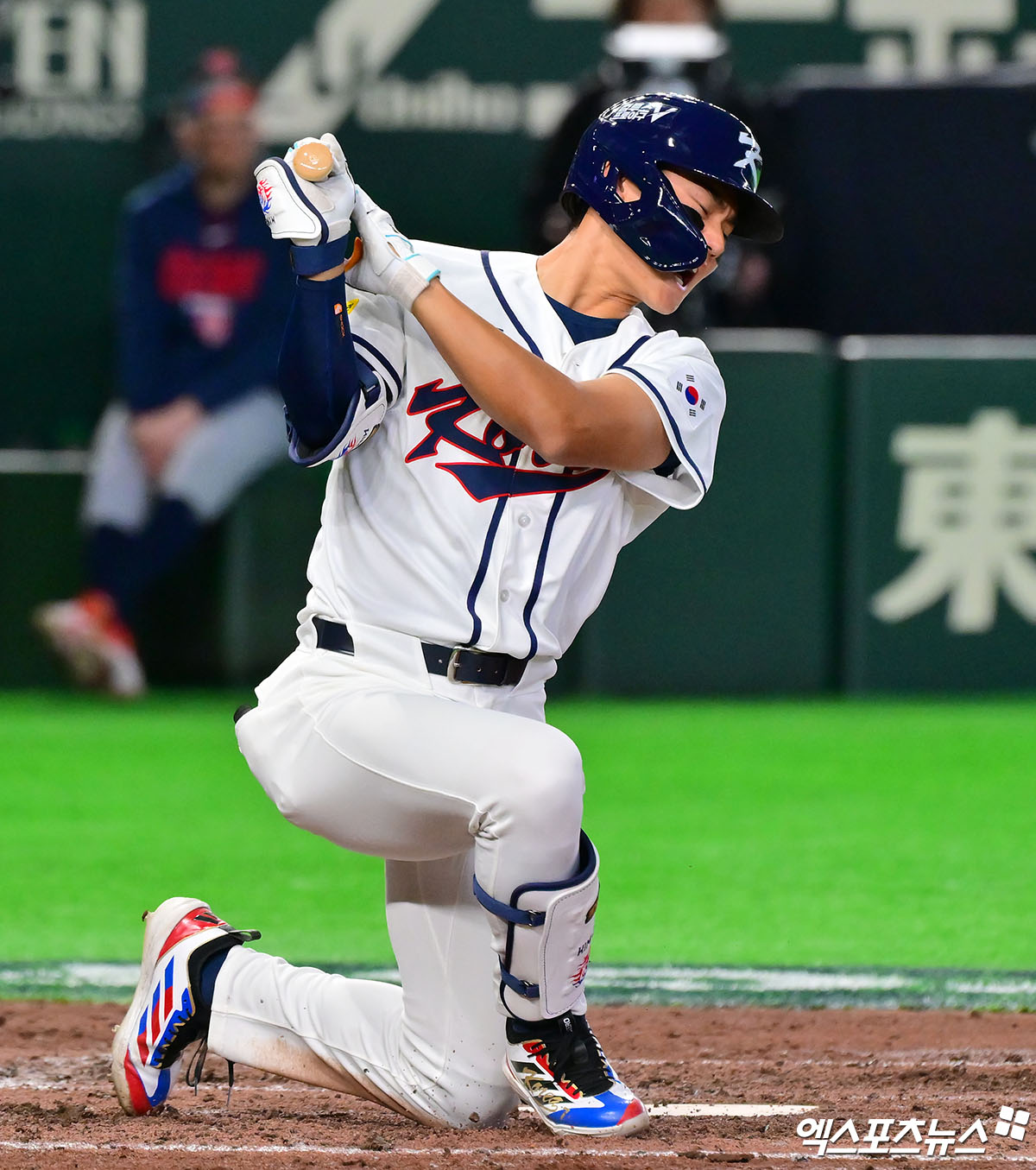 (엑스포츠뉴스 도쿄(일본), 김한준 기자) 5일 오후 일본 도쿄돔에서 열린 2026 월드베이스볼클래식(WBC) C조 체코와 한국의 경기, 5회말 2사 2루 한국 김주원이 파울타구에 맞은 후 고통스러워하고 있다.