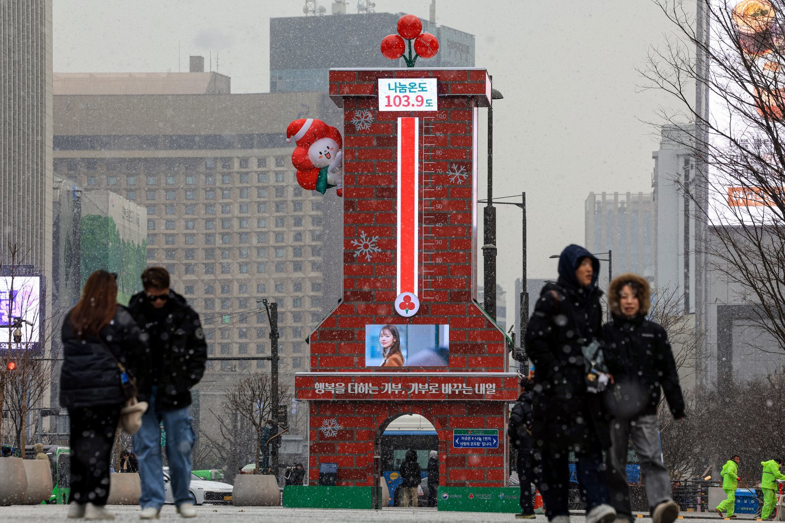올 1월 서울 종로구 광화문광장에서 외국인 관광객들이 사랑의 온도탑을 배경으로 사진을 찍고 있다. 뉴스1 |
