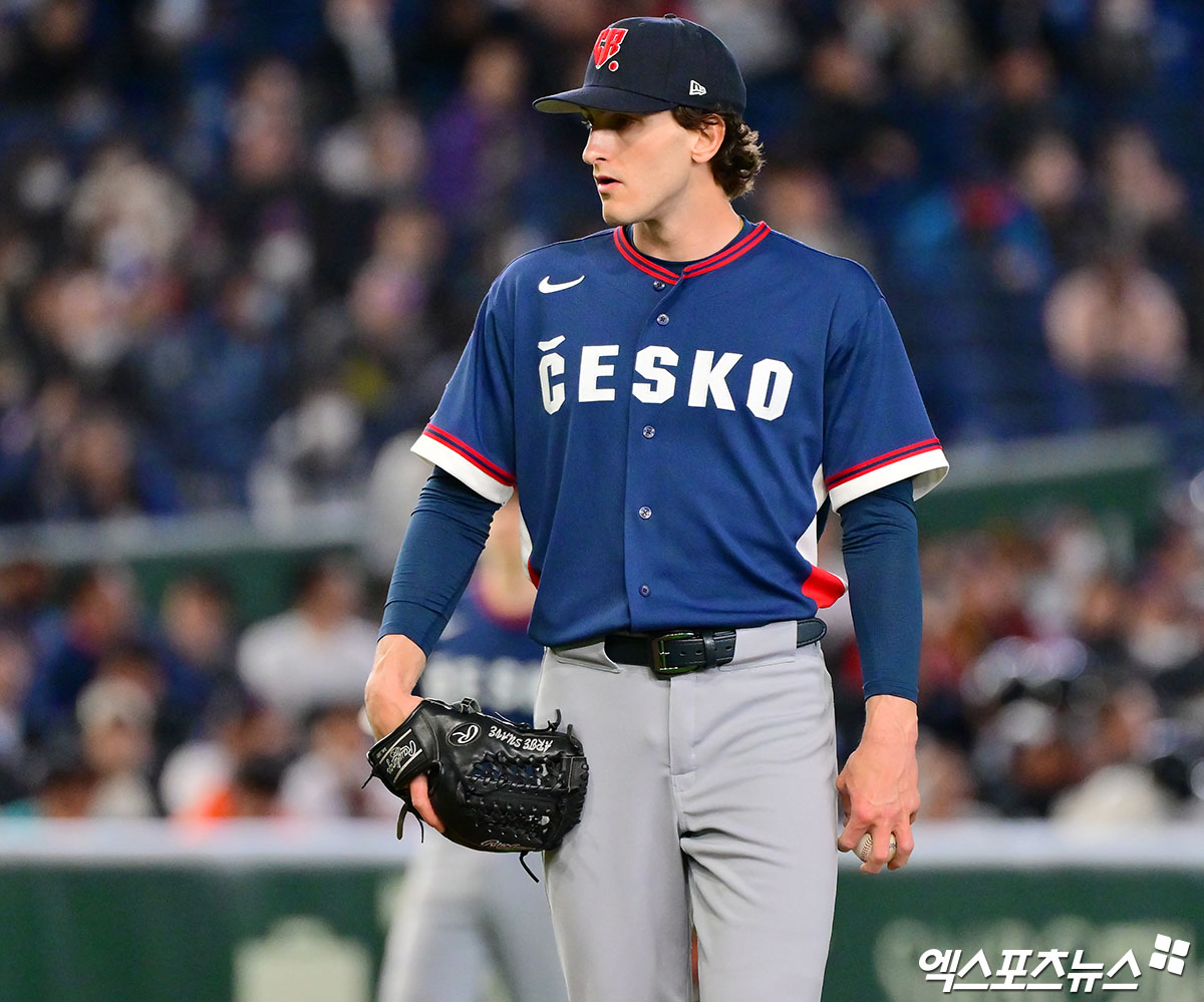 (엑스포츠뉴스 도쿄(일본), 김한준 기자) 5일 오후 일본 도쿄돔에서 열린 2026 월드베이스볼클래식(WBC) C조 체코와 한국의 경기, 6회말 체코 노바크가 공을 힘차게 던지고 있다.