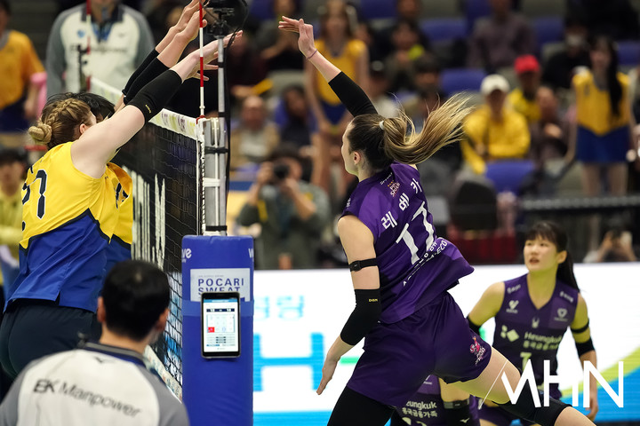 (MHN 수원, 박태성 기자) 5일 수원실내체육관에서 '진에어 2025~2026 V-리그' 여자부 현대건설(2위 61점 32경기 21승 11패)과 흥국생명(3위 53점 33경기 17승 16패) 경기가 열렸다.