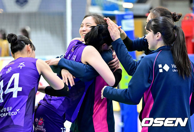 흥국생명 박혜진이 동료선수들과 승리를 기뻐하고 있다. 2026.03.05 /jpnews@osen.co.kr