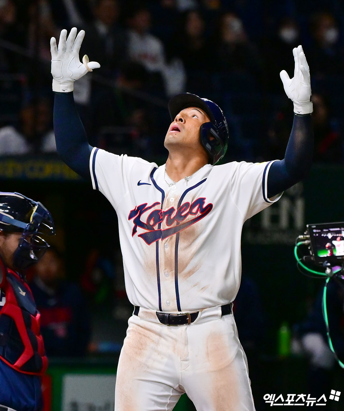 (엑스포츠뉴스 도쿄(일본), 김한준 기자) 5일 오후 일본 도쿄돔에서 열린 2026 월드베이스볼클래식(WBC) C조 체코와 한국의 경기, 8회말 2사 한국 존스가 솔로 홈런을 날린 후 기뻐하고 있다.