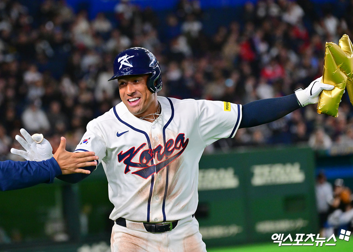 (엑스포츠뉴스 도쿄(일본), 김한준 기자) 5일 오후 일본 도쿄돔에서 열린 2026 월드베이스볼클래식(WBC) C조 체코와 한국의 경기, 8회말 2사 한국 존스가 솔로 홈런을 날린 후 기뻐하고 있다.