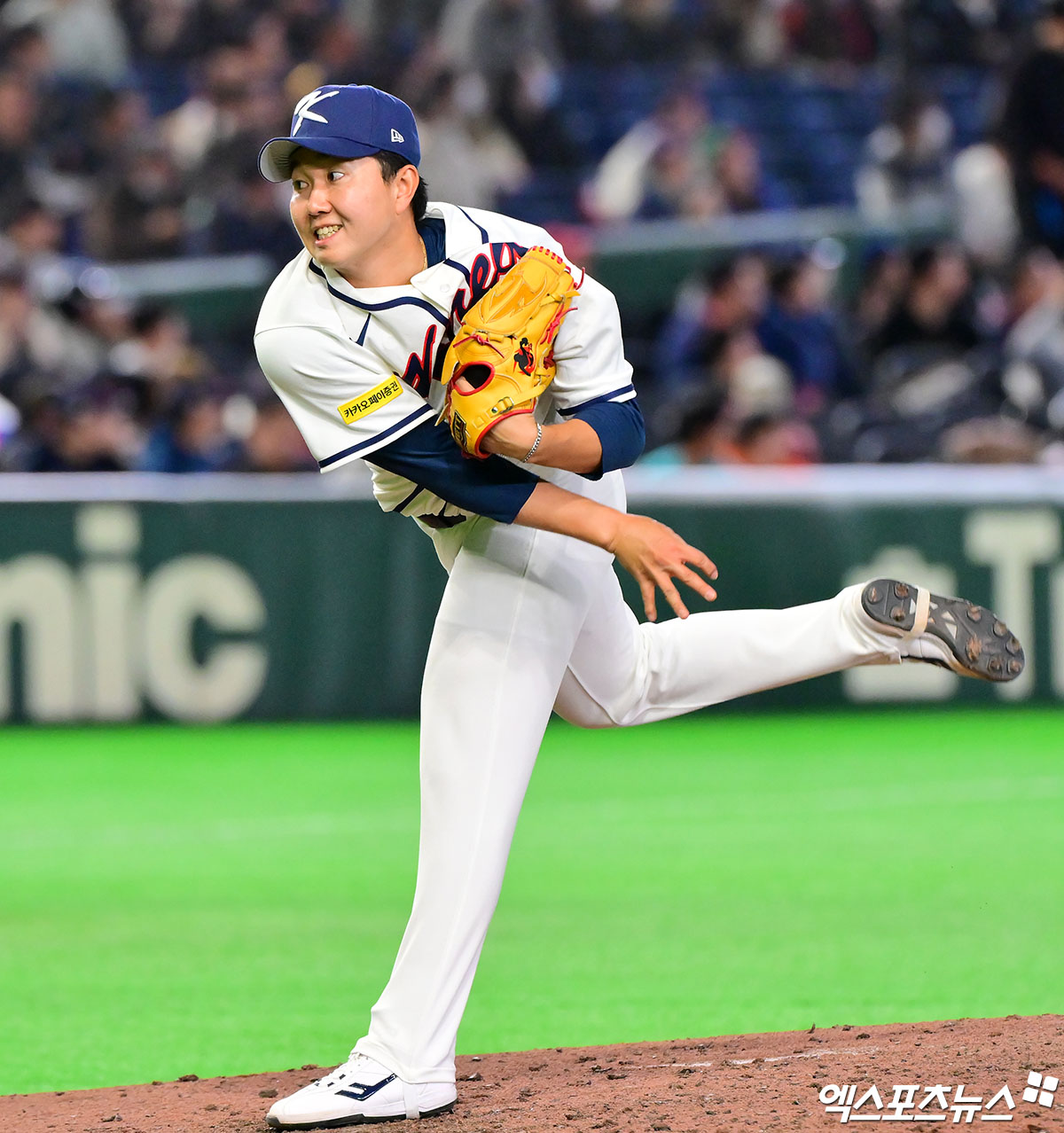 (엑스포츠뉴스 도쿄(일본), 김한준 기자) 5일 오후 일본 도쿄돔에서 열린 2026 월드베이스볼클래식(WBC) C조 체코와 한국의 경기, 9회초 한국 유영찬이 공을 힘차게 던지고 있다.
