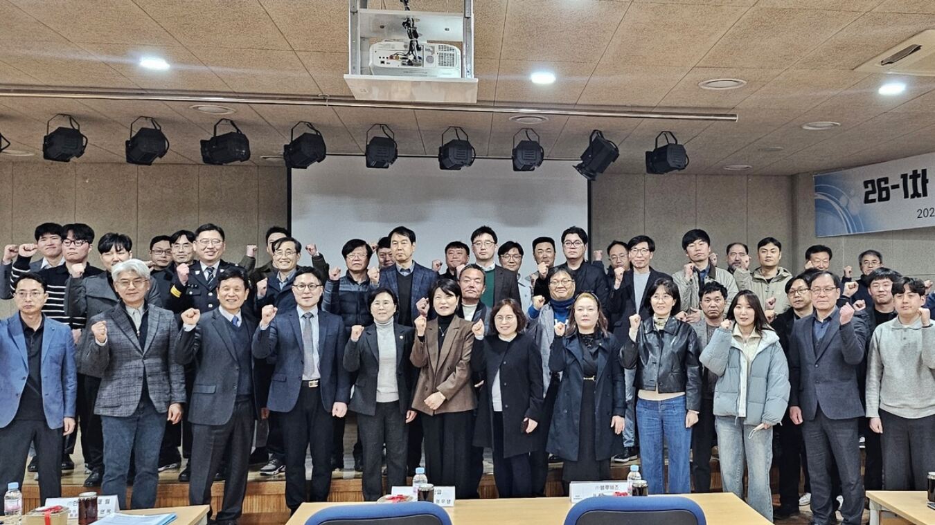 5일 전북 전주 전북테크노파크에서 열린 ‘전북국방벤처센터 협약기업 간담회’에서 전북테크노파크 협약기업 84개사 대표와 임직원 등 참석자들이 파이팅을 외치고 있다. 전주시 제공 |