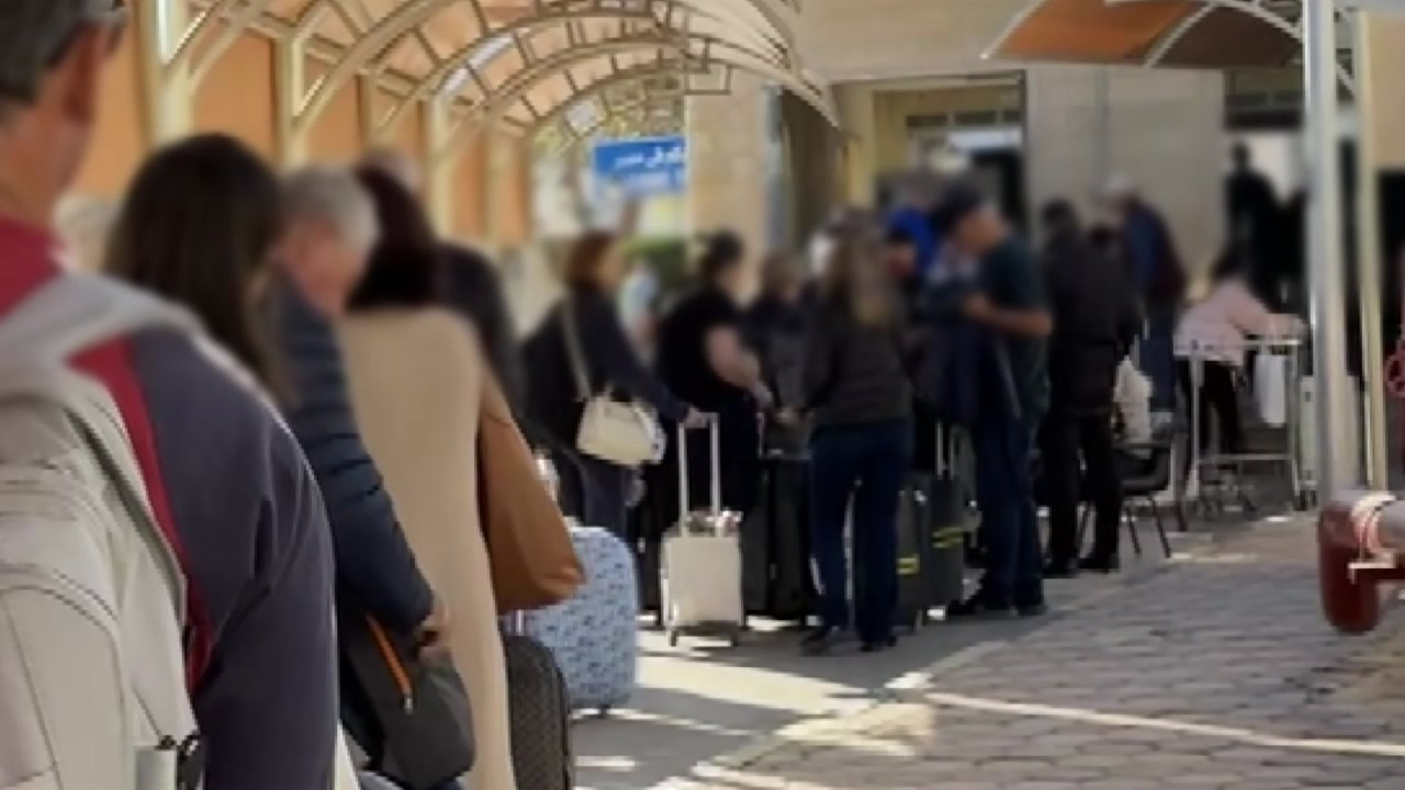 이집트 국경 앞, 이스라엘을 겨우 빠져나온 대피 행렬이 길게 줄을 섰습니다.
