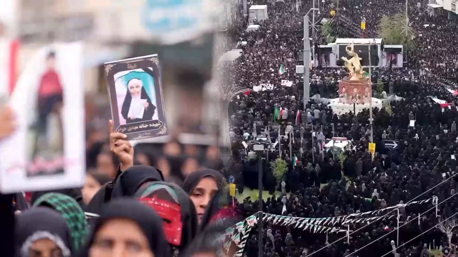 이날 이란 남부 미나브에서는 수천 명의 조문객이 모여 애도를 표했고, 관을 운반하는 트럭 주위에서 통곡하거나 이슬람공화국을 지지하는 구호를 외치는 사람도 있었습니다.
