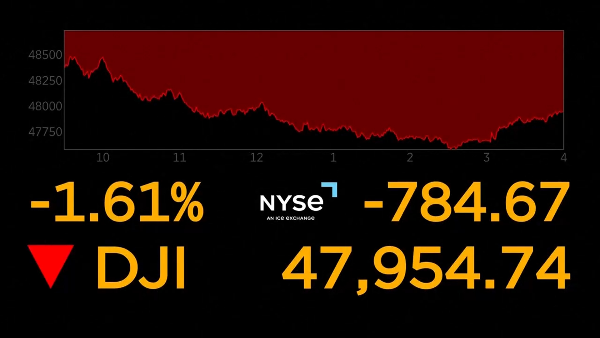 현지시간 5일 다우존스30 산업평균지수는 전장보다 1.61% 떨어졌습니다.