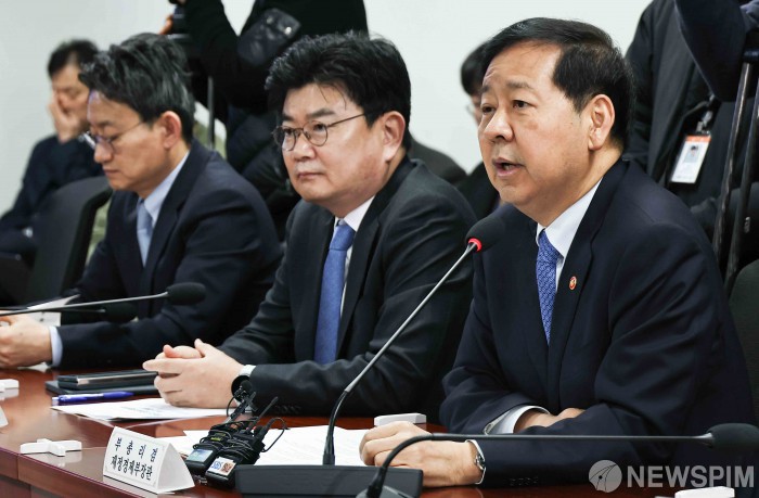 [서울=뉴스핌] 윤창빈 기자 = 구윤철 부총리 겸 재정경제부 장관이 6일 오전 서울 여의도 국회 의원회관에서 중동 상황 관련 경제분야 대응방향을 주제로 열린 재정경제위원회 제5차 당정실무협의회에서 모두발언을 하고 있다. 2026.03.06 pangbin@newspim.com |