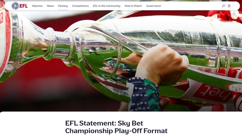 챔피언십 플레이오프 참가팀 확대를 발표한 EFL 홈페이지 |