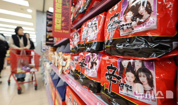 [서울=뉴시스] 추상철 기자 = 12일 오후 서울시내 한 대형마트에서 외국인 관광객이 라면을 고르고 있다. 2026.01.12. scchoo@newsis.com |