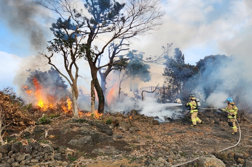 (제주=연합뉴스) 변지철 기자 = 제주에서 건조한 날씨와 강한 바람으로 인한 들불 위험이 커짐에 따라 소방당국이 '봄철 들불 안전사고 주의보'를 발령했다.