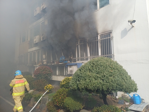(장성=연합뉴스) 정다움 기자 = 6일 오전 9시 52분께 전남 장성군 장성읍 한 아파트 1층에서 불이 났다.