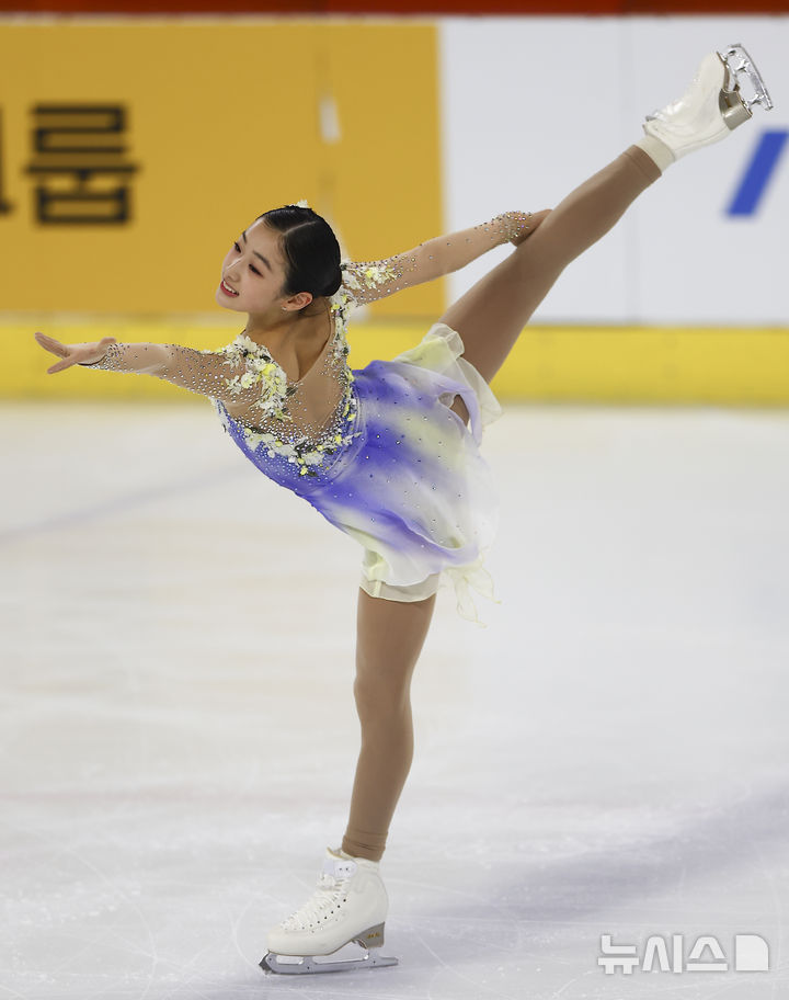 [서울=뉴시스] 김근수 기자 = 피겨 스케이팅 허지유(서울시 빙상경기연맹, 중등부)가 30일 서울 양천구 목동 아이스링크에서 열린 2025 KB금융 전국남녀 피겨스케이팅 회장배 랭킹대회에서 여자 시니어부문 프리스케이팅 연기를 선보이고 있다.이번 대회는 2026 ISU 사대륙 피겨스케이팅 선수권대회 파견선수 선발전과 2026 밀라노 코르티나 동계올림픽대회 1차 선발전, 2026/27 국가대표 1차 선발전으로 진행된다. 2025.11.30. ks@newsis.com |