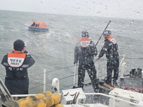 구명뗏목에 표류 중인 승선원 구조하는 보령해경 |