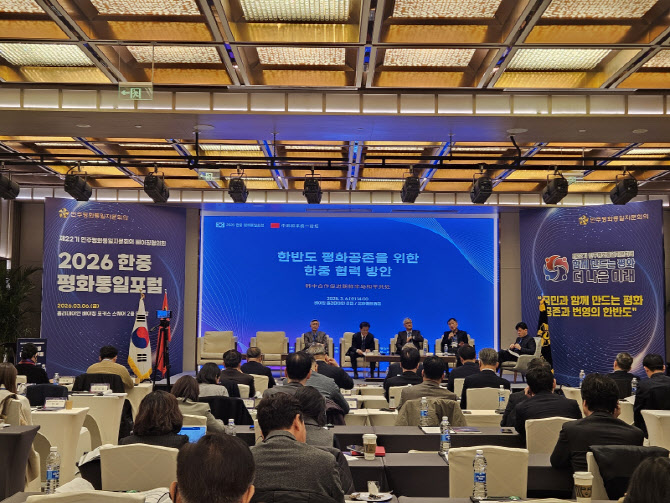 6일 오후 중국 베이징 홀리데이인호텔에선 민주평화통일자문회의(민주평통), 한국국제정치학회 공동 주최로 ‘한반도 평화 공존을 위한 한·중 협력 방안’ 포럼이 열렸다. 중동 지역 분쟁에 따른 세계안보 우려가 커지는 상황에서 한반도 평화를 위한 방안을 모색하고자 마련됐다.
