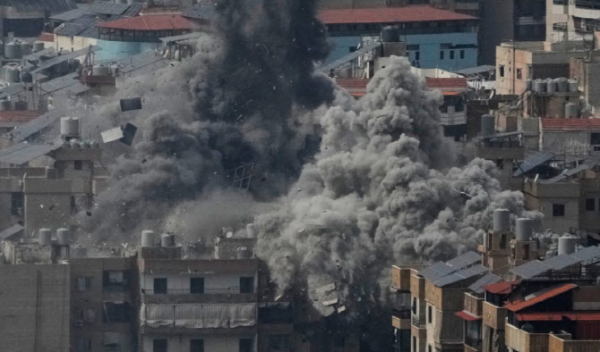 이스라엘 공습을 받은 레바논 베이루트 교외.(사진 AP=연합뉴스) |