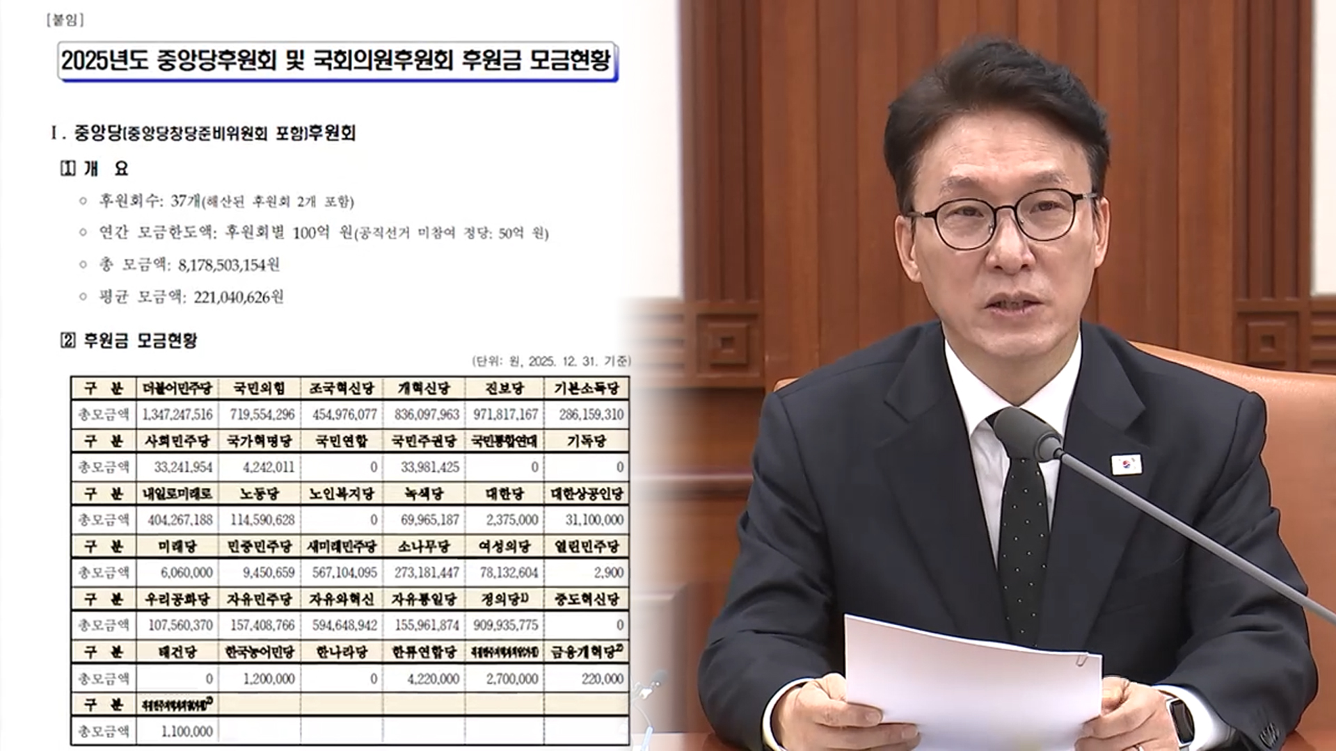 각 당 대표들만 놓고 봤을 때, 민주당 정청래 대표가 약 2억 9천만 원, 국민의힘 장동혁 대표가 약 2억 6천만 원을 후원받았습니다.