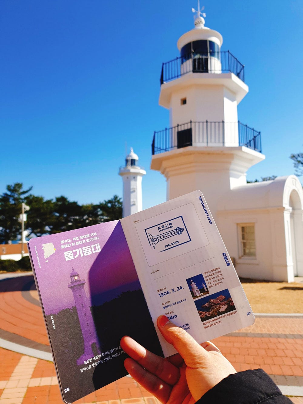 한 여행객이 울산 ‘울기등대’를 찾아 등대 여권에 도장을 찍은 모습. /SNS |