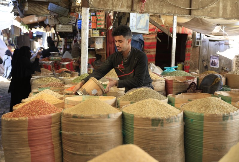 지난 1월1일(현지시간) 예멘 사나 시내 시장의 곡물 매장 모습.EPA연합뉴스 |