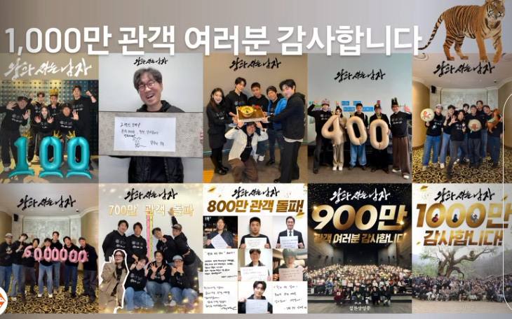 배급사 쇼박스도 흥분을 감추지 못했다. 같은 날 쇼박스는 공식 계정을 통해 100만부터 1000만까지의 관객 돌파 순간을 담은 감사 이미지를 공개하며 "1000만 관객 여러분 감사합니다"라고 전했다.